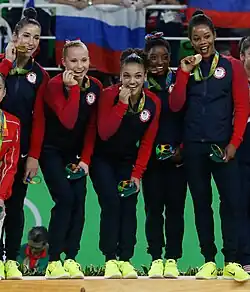 - ^ "U.S. women's gymnastics team wins gold at Rio Olympics". CBS News. August 9, 2016. Retrieved May 3, 2024.