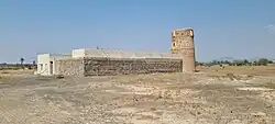 There are in fact two forts at Hili, Fili west fort and Fili east fort. The west fort is built on a hill at a distance of some 875 metres from the east fort. However, Fili east fort is uniquely referred to as Fili Fort and is a later building dating to the C19th.[1] Fili west fort, located on a small hill in the Madam plain, was established around a watchtower, or Muraba'a, and is said locally to be 500 years old,[2] a dating not supported by archaeologists, who estimate both forts as C19th constructions.[2]