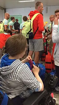Finland's shooter at the Rio airport waiting for accreditation.