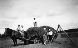Later, agronomist Axel Alfthan (1862–1934)[83] and veterinarian Kaarlo Gummerus (1840–1898[84]) expanded Aspelin's hypothesis, proposing that the horse population later diverged into Eastern Finnish and Mid-Finnish types, which had remained distinguishable as late as the turn of the 20th century. Photographs support these claims: the small Karelian horse was blocky and stout, with pronounced withers, a short neck and large head. The small horse from central Finland, on the other hand, was "more noble", with a longer body, lighter neck and more refined head.[80] The Swedish professor Eric Åkerblom even suggested that the Finnish horse spread along river valleys to Troms, Norway, and was the ancestor of the Nordlandshest/Lyngshest, found around the Lyngenfjord. The Norwegians continue to utilise Finnhorse bloodlines, having purchased the Finnish pony-type stallion Viri 632-72P for stud use in 1980. However, Åkerblom dismissed the possibility that the eastern Finnhorse came from same prototype as the western pony breeds.[85]