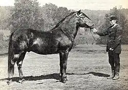 Some estates, especially in southern regions of Finland, were known to have used stallions of several light and hot-blooded breeds; for example, an officer in Pernå bred Arabians.[64][79] These crossbreeds were probably an attempt to create showy driving horses.[64] A notable failing of a crossbreeding attempt happened in 1875, when a stud was founded in Porvoo to import and export Norfolk Trotters, a breed that has had important influence in several driving horse breeds, including the Standardbred.[95] The crossbred offspring were praised for their looks, but turned out to have poor temperaments and no talent for speed.[95] Due to a combination of the large population of horses in Finland (over 200,000 animals) and the later enthusiasm for purebreeding, these estate-based crossbreeding attempts never had significant influence on the modern Finnish horse.[95]