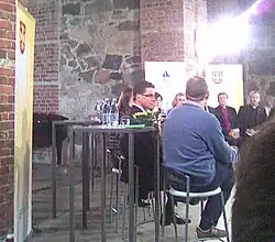 In early April, the new leader of the Swedish Social Democrats, Håkan Juholt, visited Finland in order to show support for the SDP in the election.[64] The party also invited other foreign politicians and ministers for a campaign rally in the week before the election. Liisa Jaakonsaari, an SDP MEP, justified this by saying that it was a tradition to invite colleagues from other states. The party's main guest was the German chairman of the Progressive Alliance of Socialists and Democrats in the European Parliament Martin Schulz. In the interim, the party also invited Swedish Social Democrat Marita Ulvskog who echoed the view that "investors and banks need to take responsibility." Former Prime Minister Paavo Lipponen was also present; he praised the EU and EMU and said that Finland is in a "psychological and moral slump."[54] Following a recent election of his own, the leader of the Estonian Social Democratic Party Sven Mikser and MEP Ivari Padar traveled to campaign rallies in Helsinki and Espoo on 11 April to show support for their "sister party's field campaign." Mikser said that the "Social Democrats recently garnered a strong vote in Estonia and are clearly on the rise. Now we need the same to happen in Finland." Padar also said that because of the rise of anti-EU parties in both Finland and other countries: "That is why I personally consider it important to explain to the Finnish people that Europe should not be feared. Since Estonia and Finland are the only Nordic countries in the Eurozone, we need to have [a] strong partnership in the region."[65]