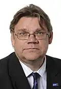The euro area crisis was another important issue in the election, even more so after Portugal applied for an EU bailout on 6 April, the first day of advance voting. According to an opinion poll nearly 60% of Finns were against Finland's participation in bailing out the crisis-ridden countries.[32] All four parties of the governing coalition (Centre Party, National Coalition Party, Green League and the Swedish People's Party) support Finland's participation in the bailout and all four opposition parties (Social Democrats, Left Alliance, Christian Democrats and the True Finns) oppose such measures. The issue helped Soini become the most visible opposition leader.[33] Soini then also stated that his party would not join in any coalition that supports guarantees to the crisis-ridden EU countries. He said that their crises are a consequence of the EU's failure.[34] Finance Minister Jyrki Katainen had commented that a bailout for Portugal should only happen if the Portuguese parliament passed even tougher austerity measures than the failed programme that led to an early Portuguese election: "The package must be really strict because otherwise it doesn't make any sense. The package must be harder and more comprehensive than the one the parliament voted against."[35][36] Despite his comments, the National Coalition Party believed the bailout to be in Finland's interests.[37] It, along with the Centre Party, supported the bailout under the EU's auspices, while the True Finns and the Social Democrats were opposed to it.[38] The True Finns said that Finnish taxpayers were being unjustly burdened by "squanderers" within the eurozone and pointed out that no one aided Finland during its own financial crisis in the 1990s.[39] Helsingin Sanomat read the affair as having added "confusion" and complexity to the electoral race.[38] The effect of the Finnish election on a possible EU bailout caused concern amongst to international investors as "it is a very distinct possibility that the next government and parliament of Finland will not want to agree to the things that the current government has signed up for, namely supporting Portugal and agreeing to the permanent and temporary crisis mechanisms,"[40] as there was said to be an "even chance" of Finland blocking a bailout for Portugal as its support was crucial because it would need the unanimous support of all national governments to pass.[39] Finland's participation was further thrown in doubt as it was the only eurozone country to require parliamentary approval of any such measure.[37][41] Should a new Finnish administration opt out of the bailout, this could throw into doubt the eurozone's capacity to maintain financial stability.[42]