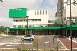 Phase 1 was the opening of the State Rehabilitation Service, with pathology, pharmacy and medical imaging providing support as required.[12] It opened on 4 October 2014, with patients from Royal Perth Hospital's Shenton Park campus being transferred to the new facility. Approximately 23 vehicles – ambulances, or others suitably equipped – left Shenton Park, transporting more than 80 patients. The new State Rehabilitation Service has a 140-bed capacity.[13]