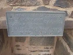 - 'This fireplace built by Tom Phin and A.W.B. Orman 1885 is part of the first office of the B.H.P.'[1]