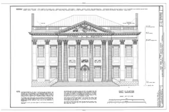 ![]() Measured drawing of the First Bank from the Historic American Buildings Survey.[25] | |