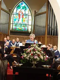 First Baptist Church is a historic Baptist church affiliated with the Cooperative Baptist Fellowship located at Middle Street and Church Alley in New Bern, Craven County, North Carolina. It was built in 1848, and is a rectangular brick church building in the Gothic Revival style. It features a two-stage, turreted entrance tower. Its brickwork is laid in Flemish bond.[2]