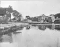 This view upstream from the harbor around 1901 shows the iron bridge and the mill that stood in today's Grist Mill Park (on the right) -
