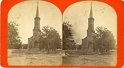 The place was frequently visited by Mr. Joseph C. Stiles, a licentiate and Evangelist of Hopewell Presbytery, who took it in as a part of his field. As the fruit of his ministry a church was organized June 18, 1826, of twenty five members, by Rev. Benjamin Gildersleeve, First Presbyterian Church was born on June 18, 1826, just three years after the city of Macon was chartered. The church continued to be a part of the Evangelistic field of Mr. Stiles, till 1828, when Rev. James C. Patterson became the regular supply for two years till the Fall of 1830. During Mr. Patterson's ministry the first building, a wooden structure, was erected on Fourth street. This building was turned over to the Baptists, who removed and enlarged it; and is now the Second Baptist church. The Rev. Edwin Holt was the first regular pastor, installed November 20, 1831, and served the church from 1831 to 1834, when the relation was dissolved by the Presbytery of Good Hope and he dismissed to the Presbytery of Newburyport July 27, 1836. He was followed by Rev. James Stratton, as supply, for two years. He was never settled. His name was stricken from the roll March 29, 1843, he "having joined another church." He was succeeded by Rev. Samuel J. Cassels, who was installed November 5, 1836 and continued till April 13, 1842. It was during the ministry of Rev. Mr. Cassels, that the second house, a brick building commenced during the ministry of Mr. Stratton, was completed.[2]
