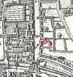 Fisher's Folly (marked in red)[1] from the "Copperplate" map of London, c. 1553–59