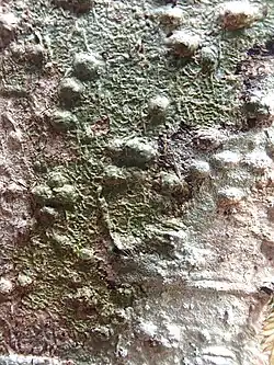 | Fissurina dumastii on the bark of a kahikatea tree in Manurewa, Auckland, New Zealand | |