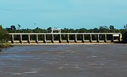 The Fitzroy River Barrage is a mid-river dam system constructed on the Fitzroy River in Rockhampton, Queensland, Australia, which separates the tidal river into saltwater and freshwater sections.[1] It was designed to dam the river, enabling a permanent water supply to be stored for the city and its surrounding communities as well as providing an agricultural water supply for registered rural users.[1]
