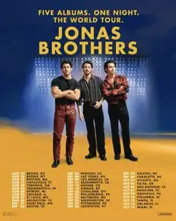 Five Albums. One Night. The World Tour[1] (also referred as the World Tour or simply the Tour) was the twelfth concert tour by American pop rock band Jonas Brothers, in promotion of their sixth studio album, The Album (2023).