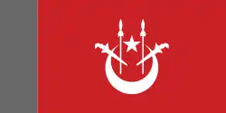 | Design | A red field defaced with a white crescent and star and two white kris and spears. |