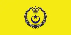 present | Royal standard of the Raja Perempuan | A yellow flag with the royal arms in blue charged on the centre. |