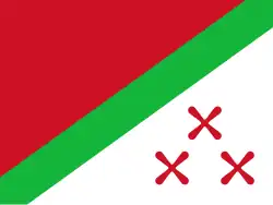 | Design | Flag divided diagonally from lower hoist-side to the upper fly-side into two fields, one red and the other white. The fields are separated by a green band. In the white field are three red Katanga crosses. |