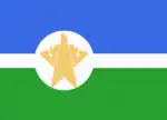 | Design | A rectangular field arranged with two strips at even proportions (azure on top, and green on bottom) and a stylized crown on the azure strip. |