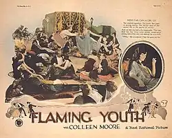 Flaming Youth is a 1923 American silent drama film directed by John Francis Dillon and starring Colleen Moore and Milton Sills, based on the novel of the same name by Samuel Hopkins Adams. Associated First National produced and distributed the film. In his retrospective essay "Echoes of the Jazz Age", writer F. Scott Fitzgerald cited Flaming Youth as the only film that captured the sexual revolution of the Jazz Age.[1] The film is now considered partially lost.[2] One 11 minute reel survives and is housed at the Library of Congress.[3][4]