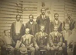 Seated: Will Tanner, Tom Christian, Spencer Bryant-Chairman, Jerry Sypho, Rance Baily. Standing: James Wise, Hill Lyons, Rev. Jim Davis-Pastor, Henry Shumake, and Andrew Waits.