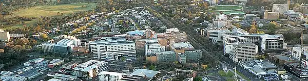 The road provides access to several notable medicine and medical research institutions, as well as other facilities, particularly in the southeastern portion. It is a major healthcare precinct, containing many of inner Melbourne's hospitals. Some of these facilities are listed below, from north-westernmost to south-easternmost: