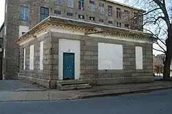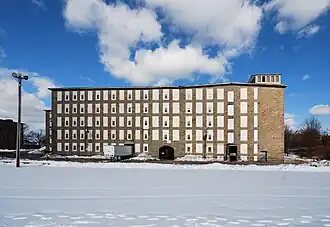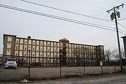 Flint Mills is a historic textile mill complex located on Alden Street in Fall River, Massachusetts, near the banks of the Quequechan River. The company was founded in 1872 and named in honor of John D. Flint, who served as its first president. The original 1872 mill burned in 1882, and was rebuilt in 1883. The complex was later expanded with a second mill and large addition in 1909.[2] The site also contains a detached granite mill office building. The section of Fall River surrounding the mill became known as "Flint Village". The site was added to the National Register of Historic Places in 1983.