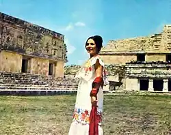 Flor Silvestre on location in Uxmal, Yucatán, for the film Peregrina (1974)
