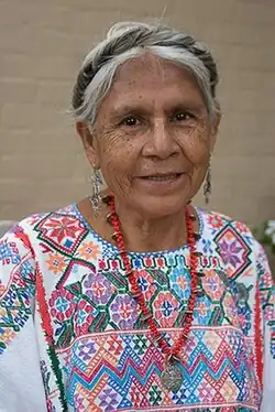 López de Jesús was born into a poor Amuzgo family in Xochislahuaca, in the Costa Chica region of the state of Guerrero, Mexico.[1] Like most Amuzgo girls, she learned to weave cotton garments by watching and imitating her mother starting at age six.[2] When she was fourteen, she went to work as a maid to help the family's finances. She was still able to weave during this time, but not as much as she would have liked. The experience gave her the idea of creating pieces to sell in nearby Ometepec, not just for family use.[3]