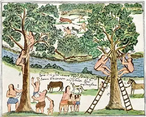 Honey harvest in a Jesuit reduction in South America, 18th Century