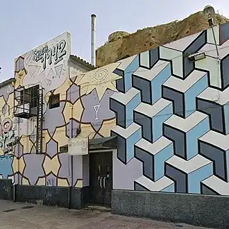![]() Façade of the club painted by the graffiti artists Aryz and Vicio | |