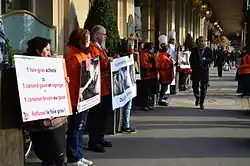 Late in 2003, the French group Stopgavage ("Citizens' Initiative for the banning of force-feeding") published the Proclamation for the Abolition of Force Feeding, which asks justices to find foie gras production practices a violation of existing animal welfare laws.[11] For this manifesto Stopgavage claims the support of over eighty French animal rights and welfare associations, over a hundred such associations from 25 other countries, and over 20 thousand individual signatories.[12]