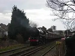 In 2006, 1,000 new houses and apartments were planned around Folkestone Harbour, but they could not be practically served by the branch line. Network Rail decided that it could not justify maintaining the route, so it began the process to close the station permanently, turning the viaduct into a pedestrian walkway.[25] The closure was objected to by the freight carrier DB Schenker, the Department for Transport (DfT) and Southeastern. During 2008, the VSOE still used Folkestone Harbour with its last train travelling on 13 November.[26] A small number of trains visited the branch thereafter; the final one was a steam-hauled rail tour by 70013 Oliver Cromwell from Victoria on 14 March 2009.[27][28]