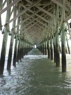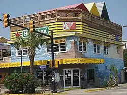 Known to Charleston locals as "the Edge of America",[8] Folly Beach is home to numerous surf spots, the most popular being the Washout, 10th Street and the Folly Beach Pier. Despite its usually calm conditions, Folly Beach has gained prominence as one of the more popular surf spots along the East Coast. Folly Beach is an eclectic beach community with surf shops, restaurants, gift shops, offices, and bars along Center Street; the main road and gateway to the community.[9]