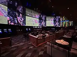 The Fontainebleau features a 173,000 sq ft (16,100 m2) casino,[150] which includes 42-foot-high ceilings.[151][152] The casino has 1,300 slot machines, 128 table games, 18,000 sq ft (1,700 m2) of high-limit gaming, and a 14,000 sq ft (1,300 m2) race and sports book.[153]