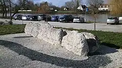 Figure 7: Remains of the aqueduct on display at Véretz. The construction of the car garage visible in the background led to the dismantling of the remains, which were moved a few meters.