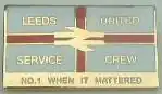 Leeds United Service Crew badge, featuring the British Rail symbol.