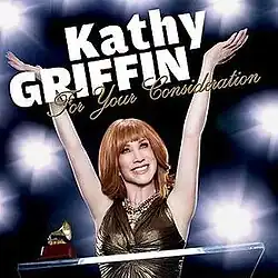 For Your Consideration is a 2008 comedy album recorded by American stand-up comedian Kathy Griffin. The album was recorded at the Grand Theatre Center for the Arts in Tracy, California on February 17, 2008. It is Griffin's first audio-only release of her stand-up material. Included on the disc are her takes on various celebrities and her personal life. Griffin stated that she decided to release this CD to try to win a Grammy Award.[1][3] For Your Consideration received a Grammy nomination for Best Comedy Album, but lost to George Carlin's It's Bad for Ya.