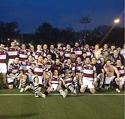 Fordham Rugby has consistently performed well both nationally and regionally,[7] most recently in 2009 when FURFC reached the NRU D1 Playoff Final Four and were crowned Metropolitan New York D1 Champions. In 2009 FURFC also won the storied Cherry Blossoms Tournament. The year prior in 2008, FURFC fell short of the title and finished runner-up in the Metropolitan New York D1 final.[8] In April 2016, Fordham Rugby won the Empire Rugby Conference 7s Championship Series.[9] By winning the Empire Conference, Fordham Rugby's 7s Team qualified to compete for a national title at the USA Rugby College 7s National Championships.[10] The team was also a D1 regional power during the 1990s despite sharing the division with perennial champion Army, who regularly appeared in the national title game during this period. Fordham was Army's toughest division rival during these years and regularly finished near the top of the conference. From 1992 to 1996, Fordham qualified for the national championship playoffs playing Harvard, UConn, Navy, and Buffalo respectively in the national tournament during these years. Fordham was also runner-up in the Metropolitan New York Division in 1992, 1993 and 1994. In 1996, Fordham Rugby finished as champions of the Metropolitan New York Division and was among the final 16 teams representing the east in the national championship tournament and graduated three All-American players.