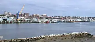 The Fore River is a short horn-shaped estuary, approximately 5.7 miles (9.2 km) long,[1] separating Portland and South Portland in Maine in the United States. Many of the port facilities of the Portland harbor are along the estuary, which is formed just southwest of Portland by the confluence of several creeks. The estuary was initially known as Levett's River, so named by the first English settler of the Casco Bay region, Capt. Christopher Levett.[2] But shortly afterwards, the estuary came to have the name by which it is known today.[3]
