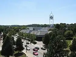 The original Forest Hills Station was a large red brick structure built in the 19th century. In the early 20th century, the traditional tracks to the North were replaced with an elevated railway which lead into Boston and connected with the city's subway, the oldest in the nation. The elevated track and the original station were torn down in the late 1980s. The station was replaced with the current, modern style station and clock tower designed by Cambridge Seven Associates and completed in 1987.
