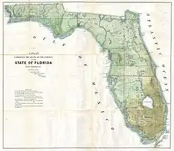An 1853 plat map of Florida that includes Fort Thompson west of Lake Okeechobee