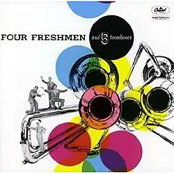 Four Freshmen and 5 Trombones is a 1956 album by The Four Freshmen[1] "It reached number six nationally and resided on the charts for over eight months."[2] It was the first album bought by Brian Wilson, who would be greatly influenced by the Four Freshmen when he formed The Beach Boys.[3] Later, the Four Freshmen were acclaimed as "the most innovative and imitated jazz vocal quartet ever to grace vinyl". Straddling vocal jazz and pop music, they were inducted into the Vocal Group Jazz Hall of Fame in 2001.[2]