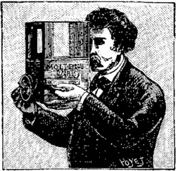 Under his direction, the Molteni firm shared with Duboscq the dominant position in the European market. It was also the favoured manufacturer of the equipment for many of the greatest scientists of the time. The majority of his time however, was spent designing light projection systems. He created innumerable devices and over 12,000 screenings for conferences and events. In the 1890s, he began working with the Lumière brothers on the equipment for some of the first motion pictures.[2][3][4]