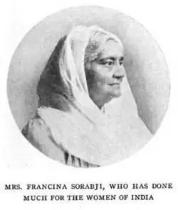 Francina Sorabji also ran a teacher-training program. She went to England to fundraise for her work in Poona in 1886, and testified before a British commission on education in India. She fostered orphans and welcomed widows and their children into her household. During an outbreak of plague in 1896, she helped to introduce preventive public health and sanitation practices in villages near Poona.[2]