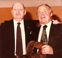 Francis Essex (Right) pictured receiving Leonard Brett Award (1981) from Lew Grade