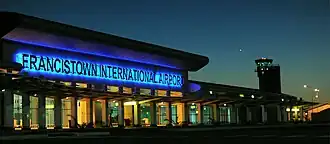 The city is served by Francistown International Airport, which was opened on 9 September 2011 after being built at a cost of P596 million, officially opened by Minister of Transport, Frank Ramsden. With a terminal building designated for traffic forecast of up to 2025, it has a larger capacity and has replaced the old airport, which is now used by the Botswana Defence Force's Air Arm.