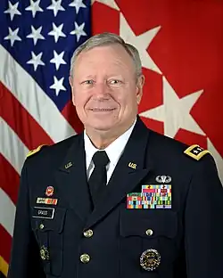 In June 2012, Grass was nominated by President Barack Obama to serve as Chief of the National Guard Bureau, with appointment to the rank of general in the reserves of the army. The appointment and promotion were confirmed by the United States Senate on 26 July 2012.[11] Grass formally took over the National Guard Bureau in a ceremony on 7 September 2012.[12][13] In 2016, the Vice Chief of the National Guard Bureau, Joseph L. Lengyel, was nominated to succeed Grass. Lengyel was promoted to general and completed a transfer of authority ceremony with Grass on 3 August 2016.[14]