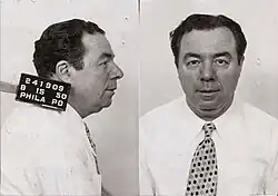 Frank "Blinky" Palermo (January 26, 1905 – May 12, 1996) was an American organized crime figure and boxing promoter who surreptitiously owned prize fighters and fixed fights; he was best known for fixing the Jake LaMotta–Billy Fox fight in 1947. An associate of the Philadelphia crime family, Palermo also ran Philadelphia's biggest numbers racket. Palermo's partner was Mafioso Frankie Carbo, a soldier in New York's Lucchese family who had been a gunman with Murder, Inc.