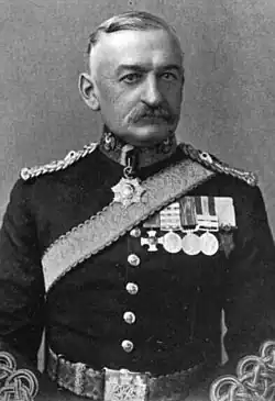 Trained as a soldier from his youth, he participated in a considerable amount of conflict in different parts of the world. After graduating from the Royal Military College, Sandhurst, he joined the 1st Royal Dragoons as a sub-lieutenant in 1873[2] and served the British Army for 23 years. In 1875 he was promoted to lieutenant[3] and in 1884 to captain.[4] As aide-de-camp to Sir Herbert Stewart,[5] he participated in the Sudan Campaign, accompanied the Nile Expedition to Khartoum in the abortive effort to relieve General Charles George Gordon, and was present at the battles of El Teb and Tamai. At the Battle of Abu Klea, he distinguished himself when he had several horses shot from under him in the course of the engagement. In September 1885 he was promoted to major[6] and in December he was granted the brevet rank of lieutenant-colonel for his service in the Sudan.[7] He was awarded several medals and clasps, including the Distinguished Service Order in 1891.[8]