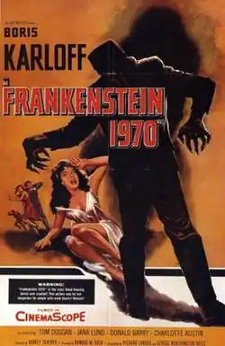Frankenstein 1970 is a 1958 science fiction/horror film, shot in black and white CinemaScope, starring Boris Karloff and featuring Don "Red" Barry. The independent film was directed by Howard W. Koch, written by Richard Landau and George Worthing Yates, and produced by Aubrey Schenck. It was released theatrically in some markets on a double feature with Queen of Outer Space.