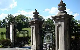 The Frankfort Cemetery is a historic rural cemetery located on East Main Street in Frankfort, Kentucky. The cemetery is the burial site of Daniel Boone, the famed frontiersman, and contains the graves of other famous Americans including seventeen Kentucky governors and a Vice President of the United States.[2]